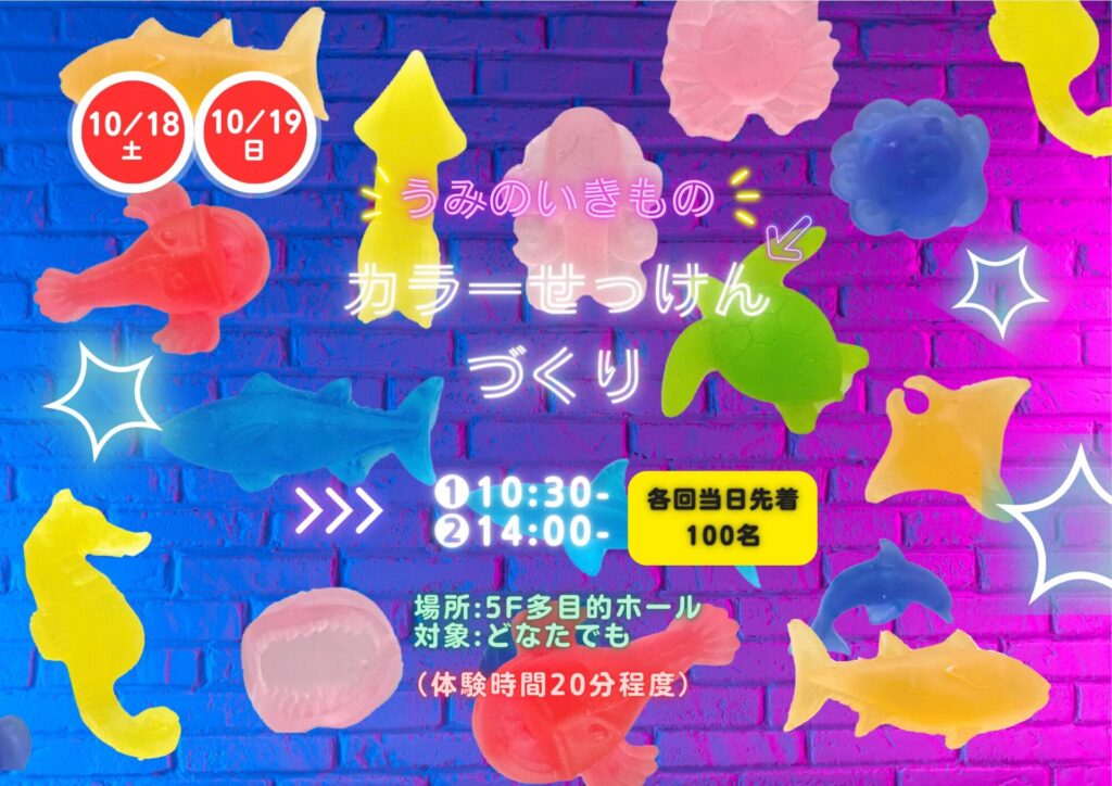 次回10月18日19日は「うみのいきものカラーせっけんづくり」です🫧🫧🫧🫧🫧