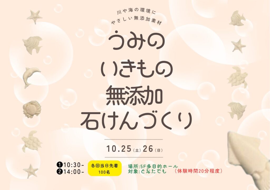 次回10月25日26日は「うみのいきもの無添加石けんづくり」です🐡🐡🫧🫧🫧