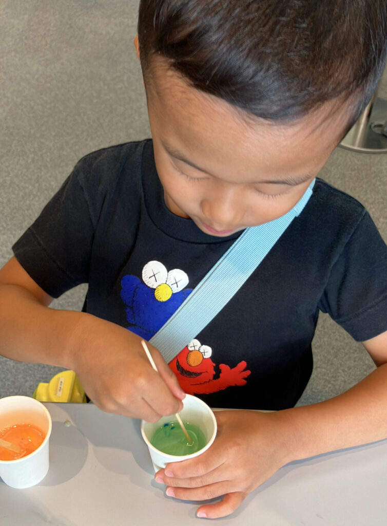 とうめいのせっけん液とカラーチップをまぜて、じぶん好みのせっけん液が作れたら