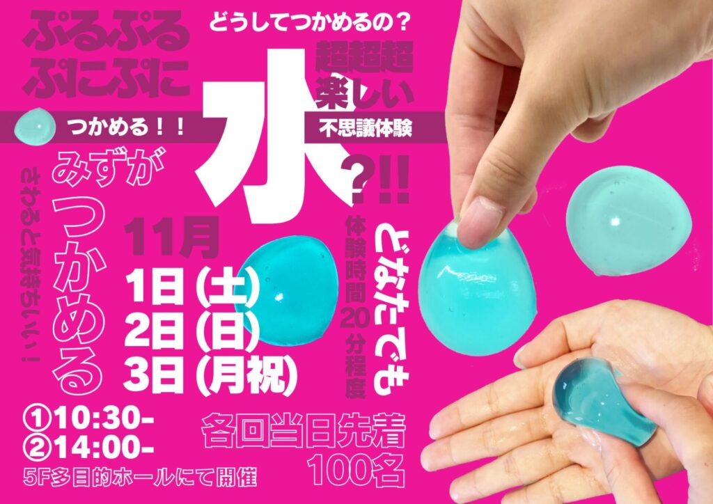 次回11月1日2日3日は「つかめる水?!雨のしずくをつくろう!」です💧💧💧✨