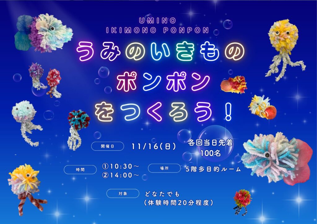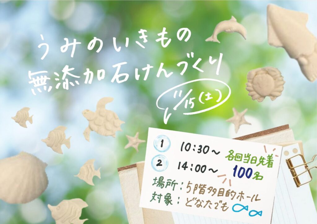 15日「うみのいきもの無添加石けんづくり」16日「うみのいきものポンポンをつくろう!」です。