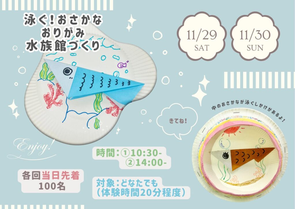 次回11月29.30日は「泳ぐ!おさかなおりがみ水族館づくり」です🐟🐡🐠.。o○