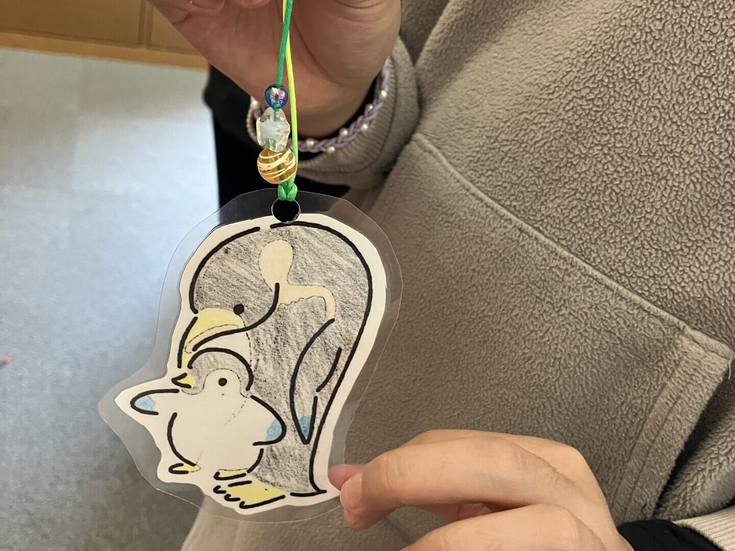 本にはさんで使うしおり🔖ですが、ビーズも付いていてキーホルダーにもなりそうですね🎶