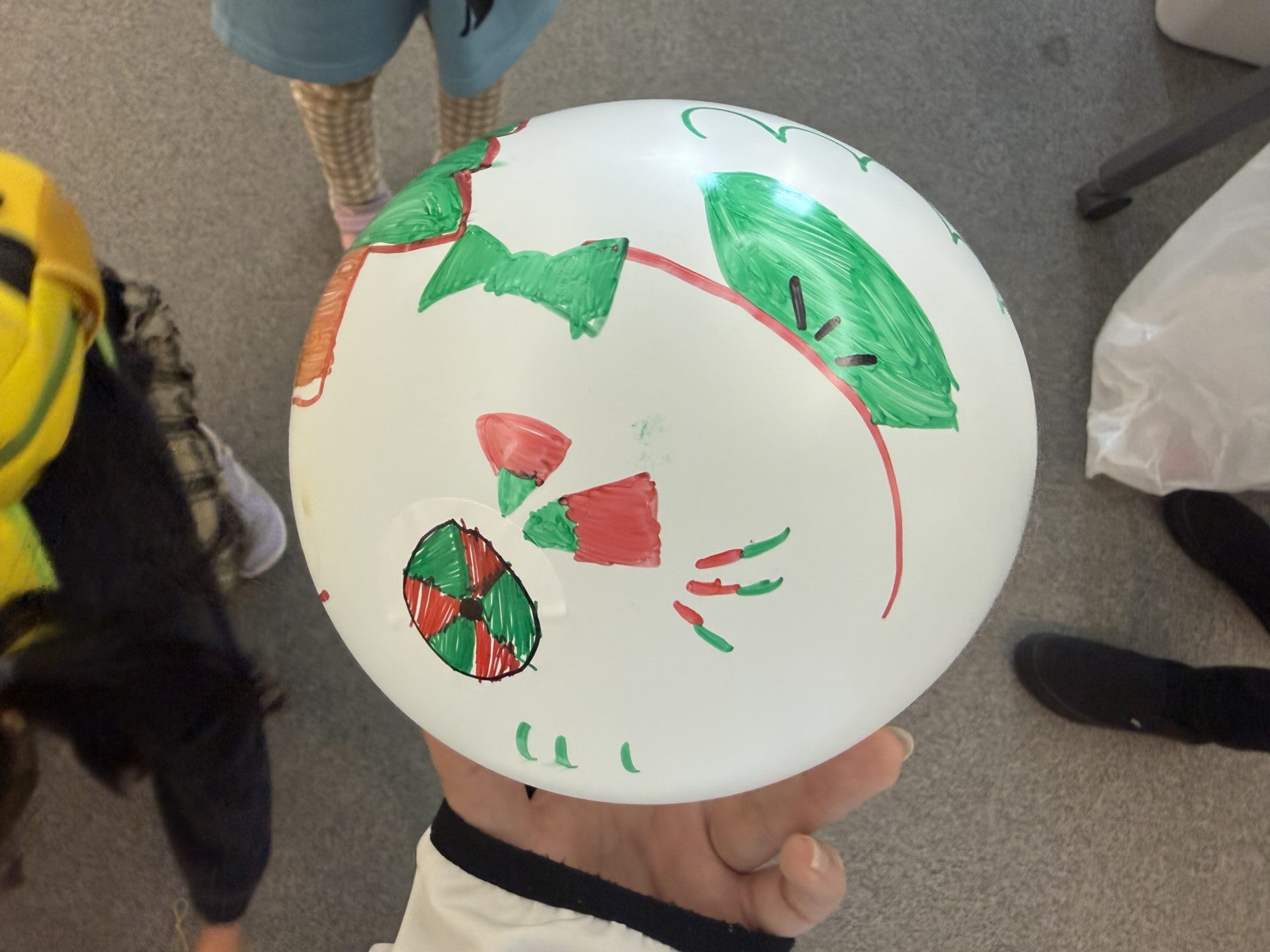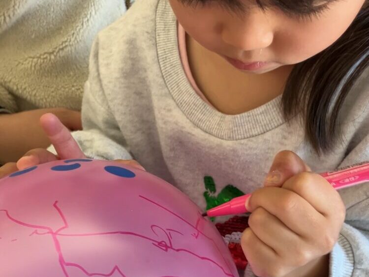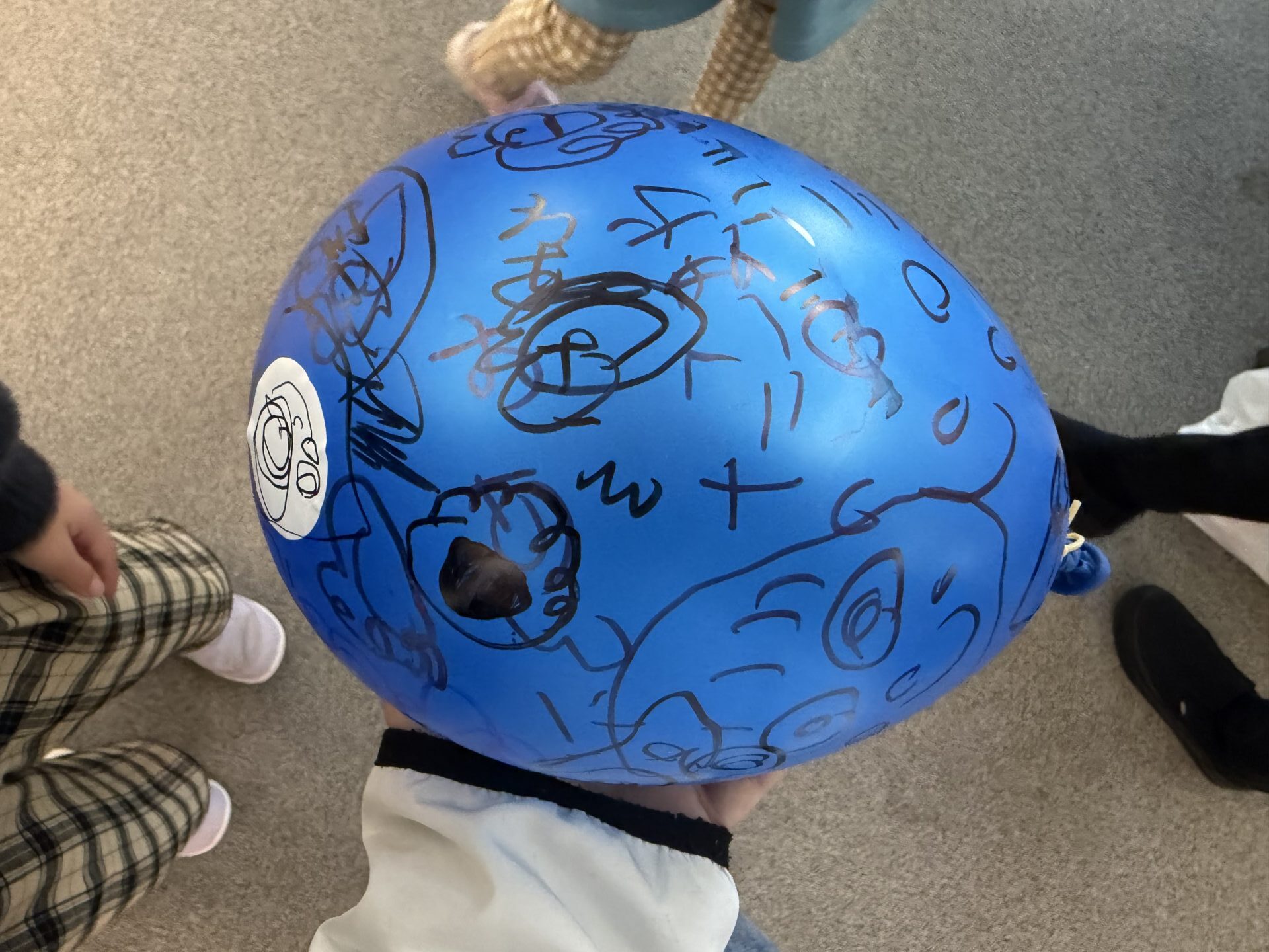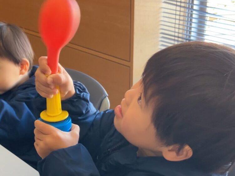 好きな色の風船を選んだら、空気を入れますが、なれないポンプを使って頑張ってくれました☺✨