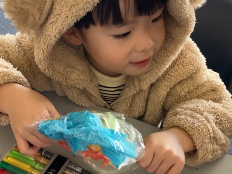 そして、ビニールに詰め込んだら、とってもカラフルなおさかなの完成❣✨