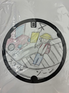 たくさんのマンホールを実際に製造している荒木製作所の荒木さんから、「滑り止め」や「シンボル」のデザインや「線の太さ」や「デコボコづくり」、「色づかい」など、マンホール蓋のデザインに必要な条件を教えていただき、オリジナリティのデザインの中にも、リアルな性能や機能を加えるデザインづくりになりました。