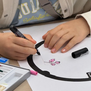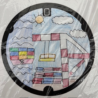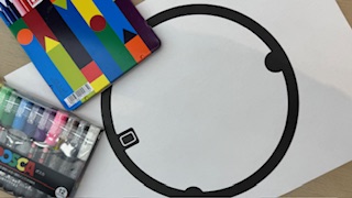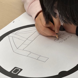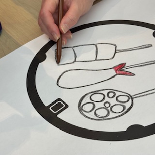 いつもの体験プログラムでは小さな缶バッジにデザインしていましたが、「極めよシリーズ」では、実際のマンホールサイズの40%、A3サイズのマンホール枠にチャレンジしていただきました。