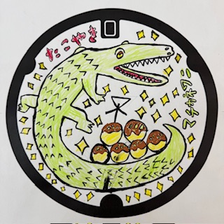 たこ焼き、串カツ、大阪城、南港の物流倉庫、ミックスジュースなど、そうそう!これぞオオサカ!と言いたくなるアイテムでとても分かりやすくてカワイイマンホールデザインが完成しました。