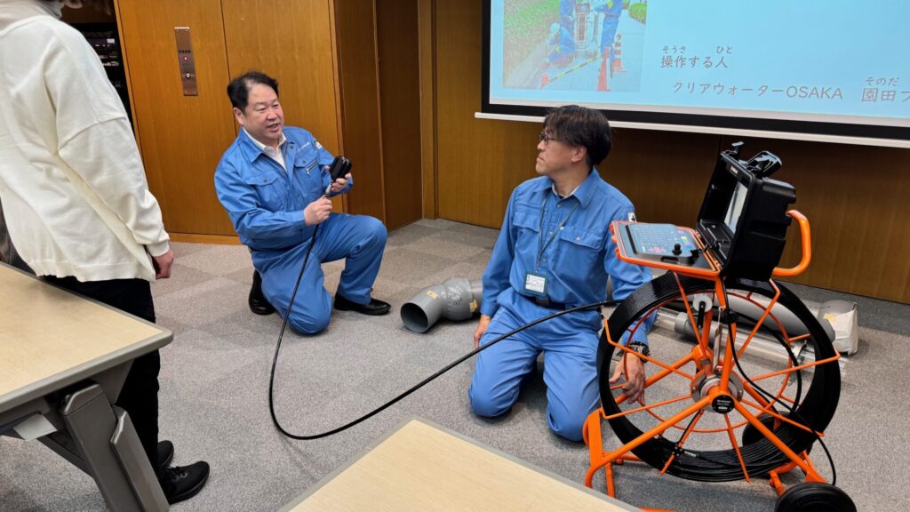 参加者のみなさんに見せてくださったのは、新品の下水管検査カメラです。