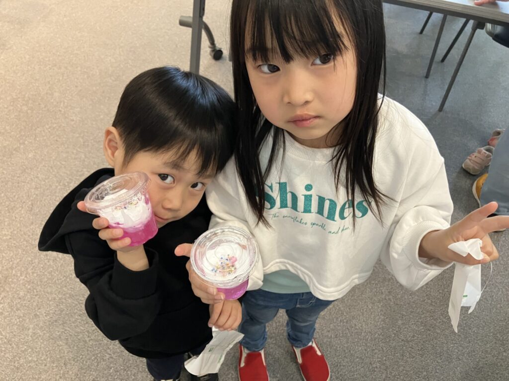 4月4日、5日の体験プログラムは「さくらフラッペ風スライムをつくろう!」でした🌸