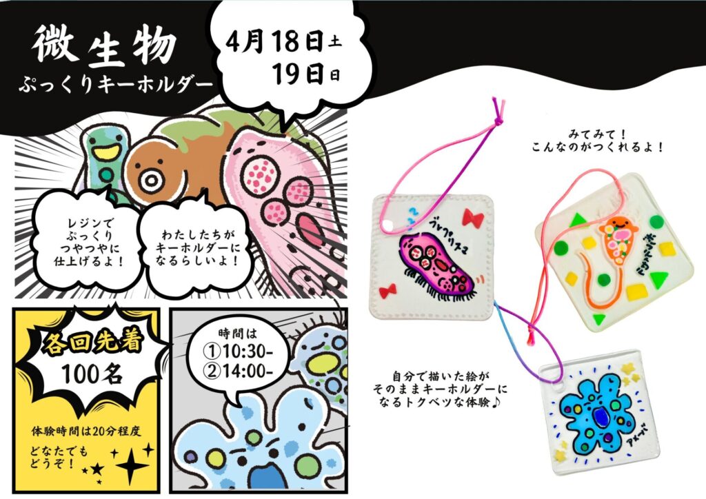 次回4/18.19は「微生物ぷっくりキーホルダーづくり」です。